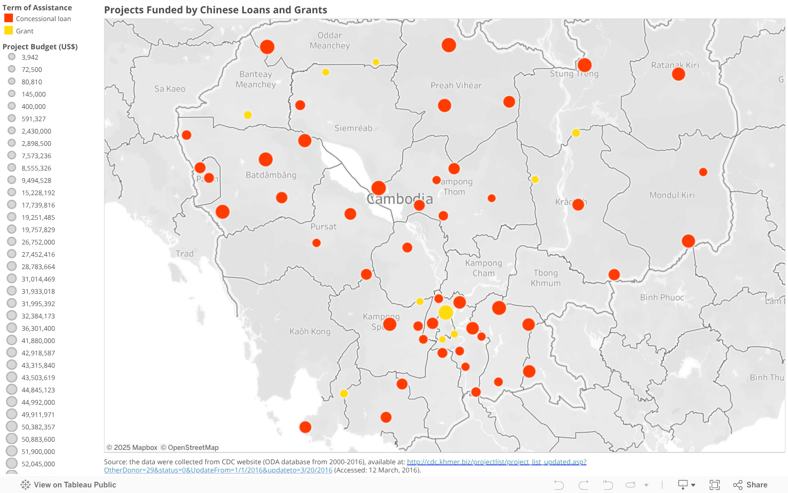 Maps of projects in Cambodia funded by Chinese loans and grants