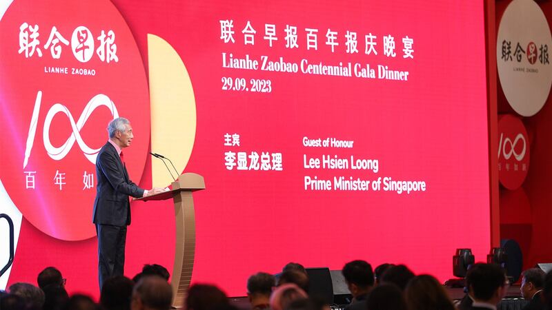 李显龙出席联合早报百年报庆晚宴。 (取自新加坡总理办公室)
