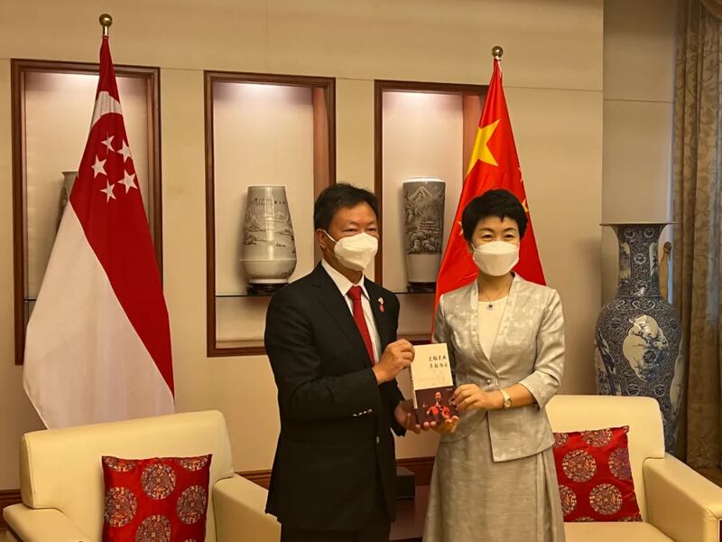 香港回归中国25周年纪念日,中国驻星大使孙海燕会见新加坡九龙会、新加坡香港商会会长陈文平。 (取自新加坡九龙会)